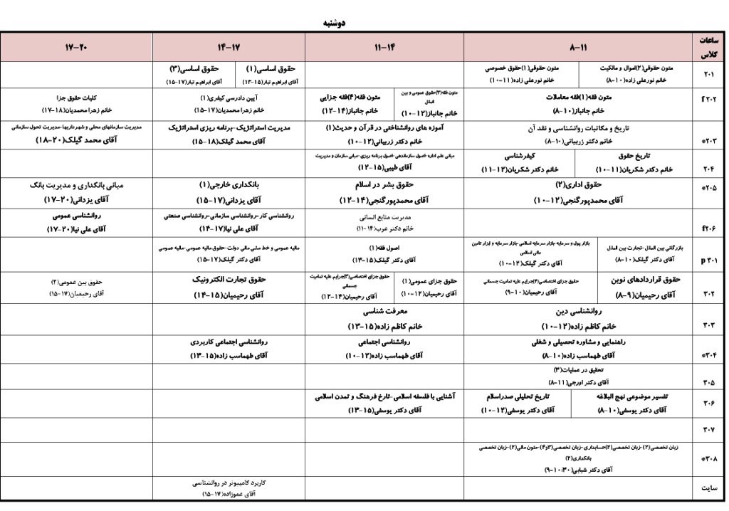 برنامه امتحانی نیمسال اول سال تحصیلی 1402-1401 کارشناسی ارشد مؤسسه آموزش عالی غیر دولتی – غیر انتفاعی راه دانش بابل