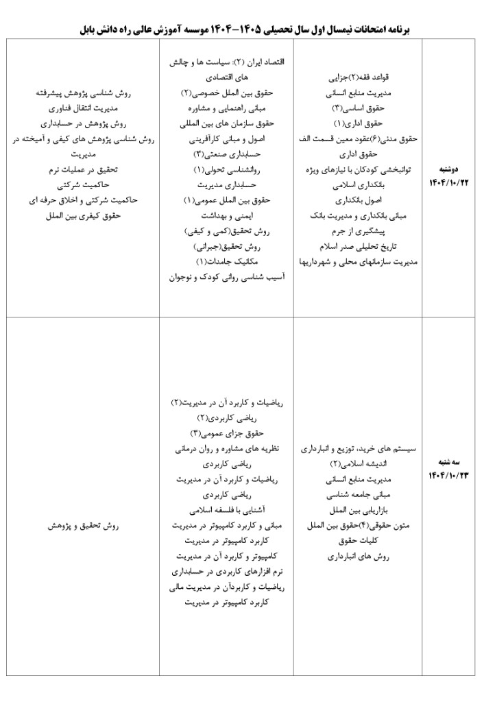 برنامه امتحانی نیمسال اول سال تحصیلی 1402-1401 کارشناسی ارشد مؤسسه آموزش عالی غیر دولتی – غیر انتفاعی راه دانش بابل